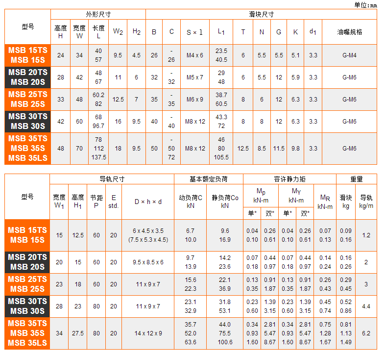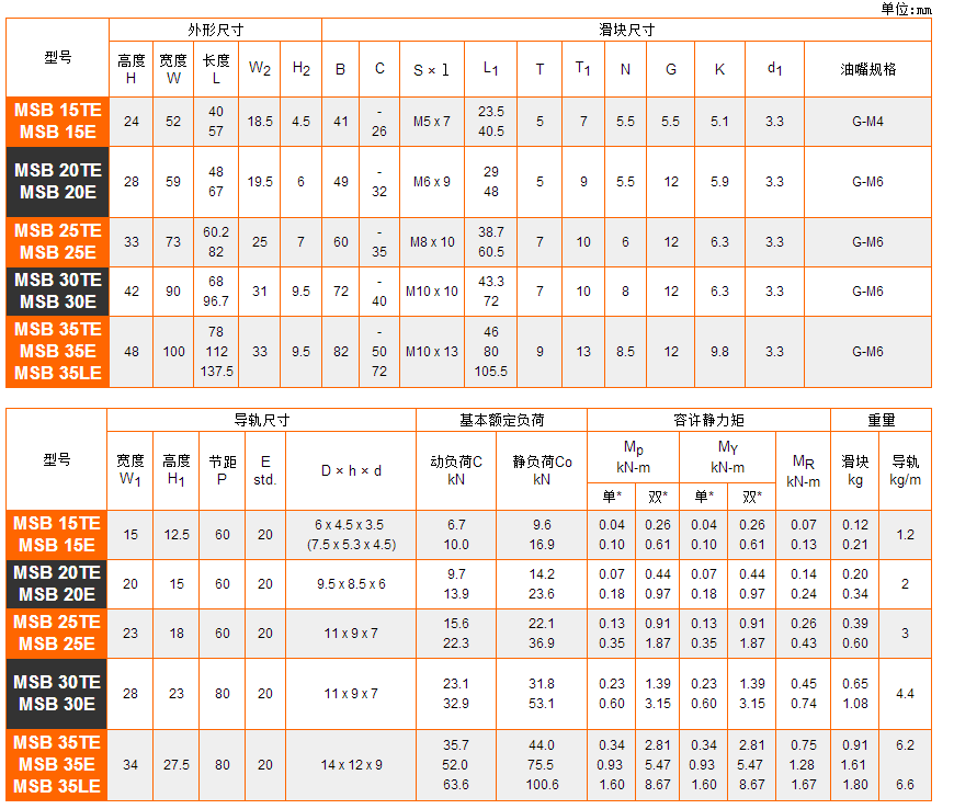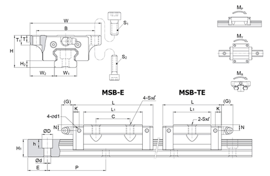 MSB系列直線導軌采用4列圓弧接觸式及45°觸角的 鋼珠列設計,提供徑向、反徑向及橫方向四方向的相同額定負荷能力,無論X、Y、Z等軸的各種安裝方式都可以使用,并且可在維持低摩擦阻力情況下均勻的施以 預壓,增強四個受力方向的剛性,特別適合高精度與高負荷的運動方式。